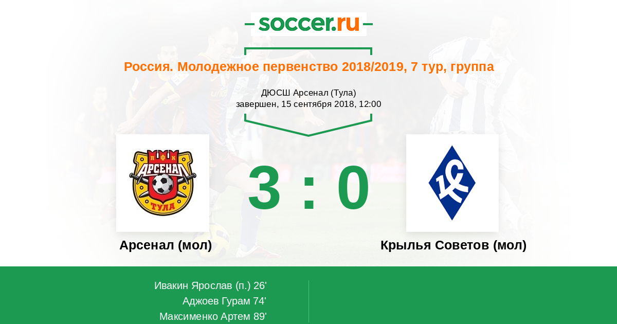 Протокол матча Арсенал (мол) против Крылья Советов (мол)