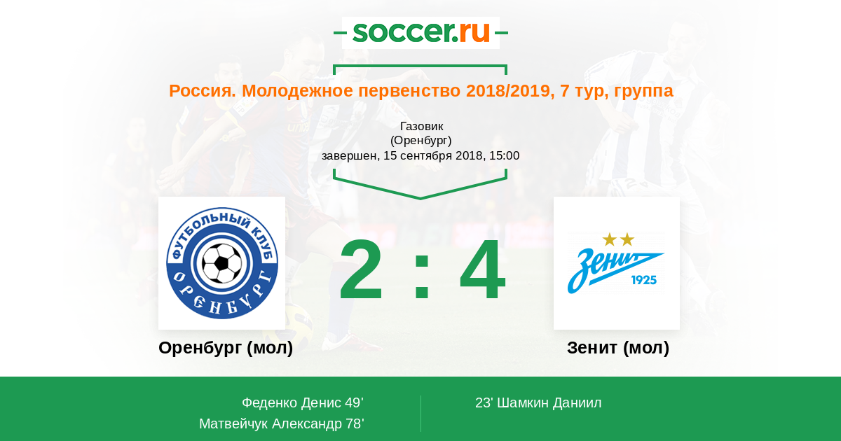 Протокол матча Оренбург (мол) против Зенит (мол)
