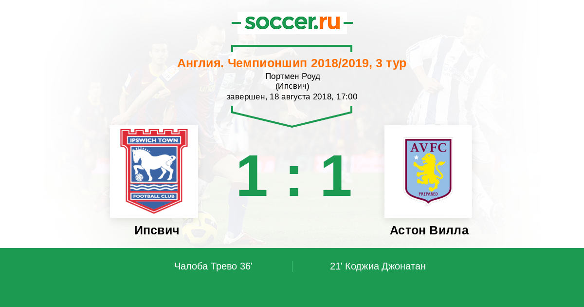 Протокол матча Ипсвич против Астон Вилла