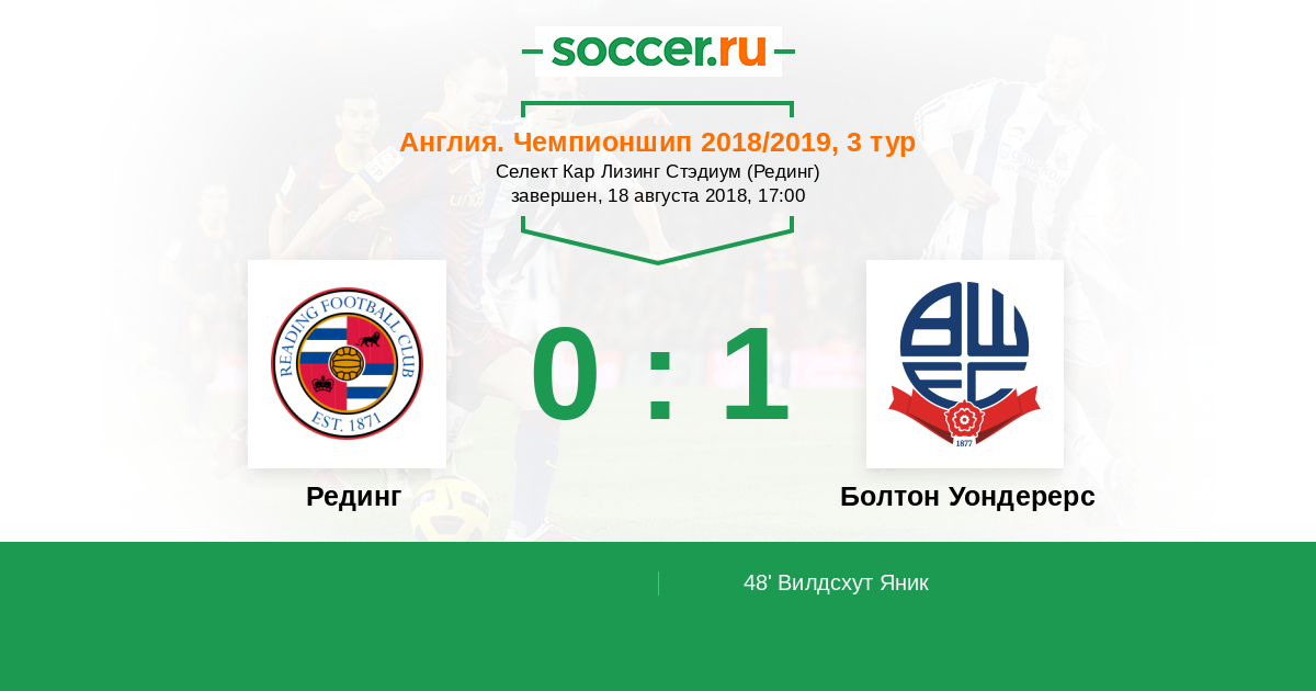 Протокол матча Рединг против Болтон Уондерерс