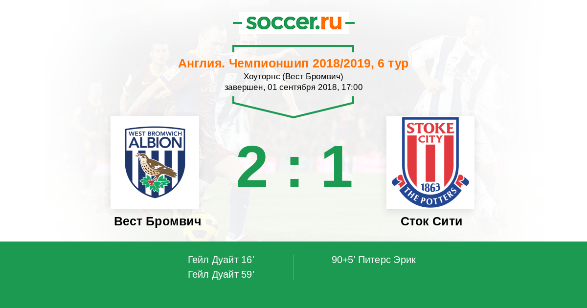 Протокол матча Вест Бромвич против Сток Сити