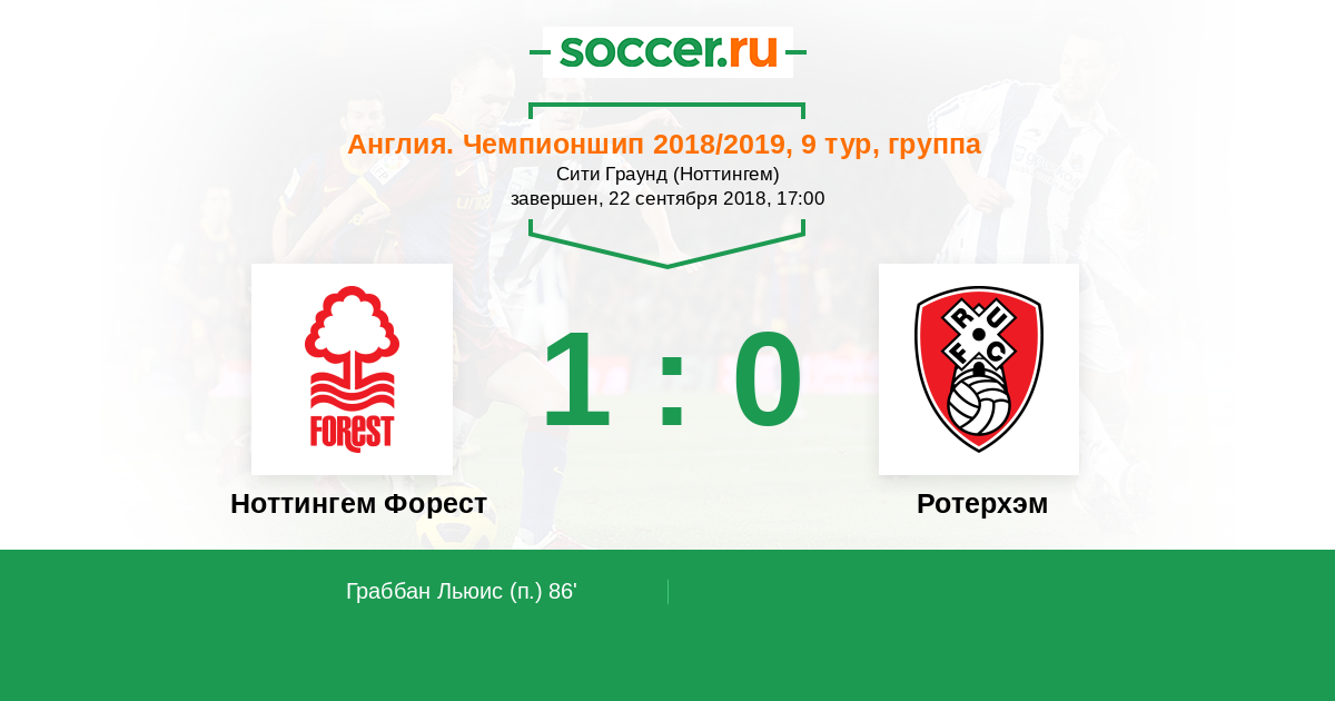 Протокол матча Ноттингем Форест против Ротерхэм