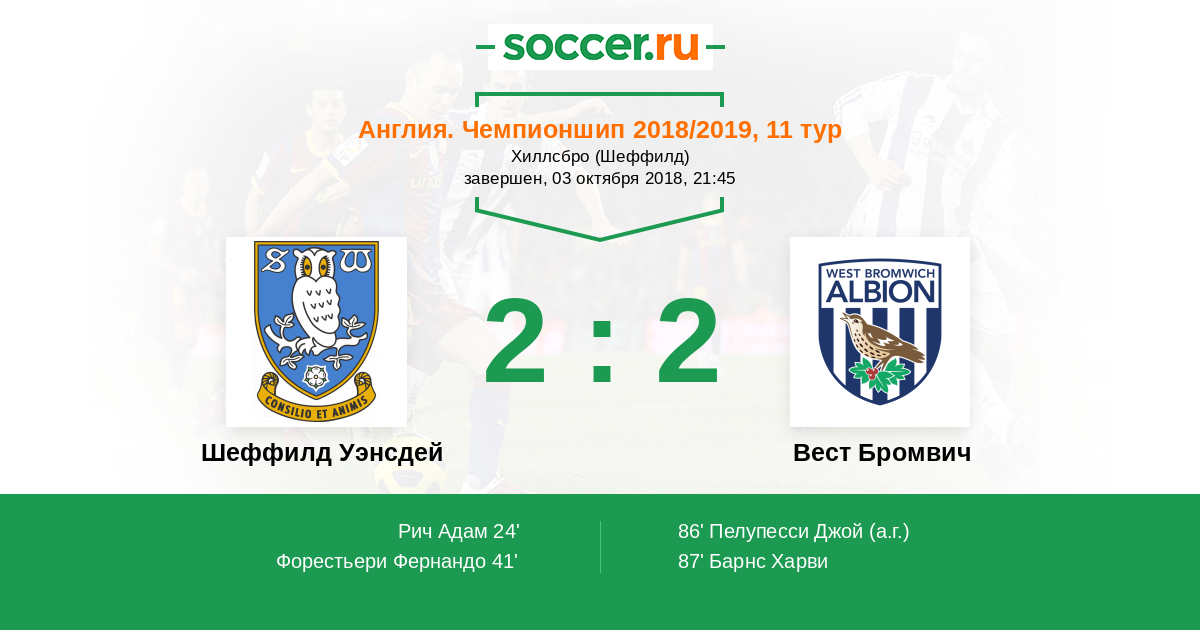 Протокол матча Шеффилд Уэнсдей против Вест Бромвич
