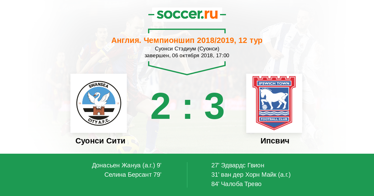 Протокол матча Суонси Сити против Ипсвич