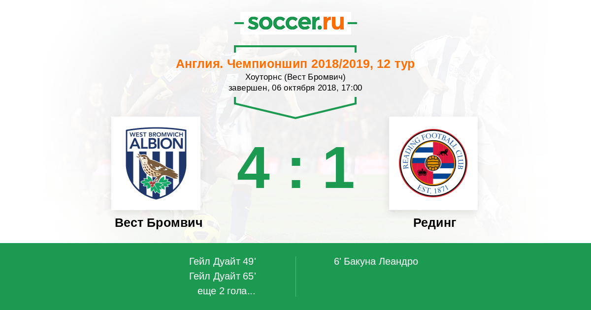 Протокол матча Вест Бромвич против Рединг