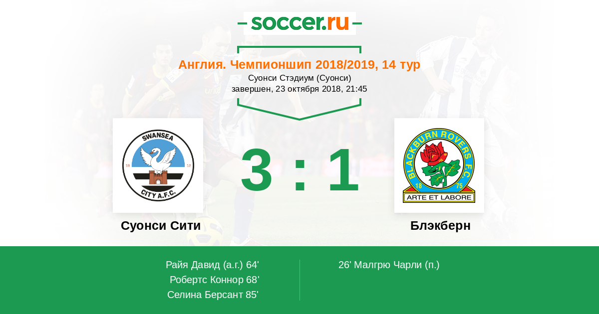 Протокол матча Суонси Сити против Блэкберн