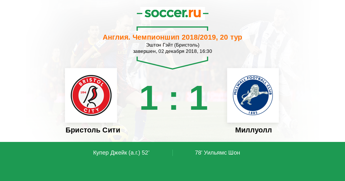 Протокол матча Бристоль Сити против Миллуолл