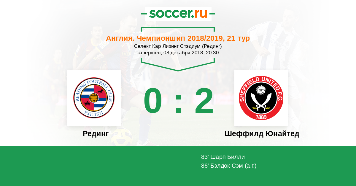 Протокол матча Рединг против Шеффилд Юнайтед