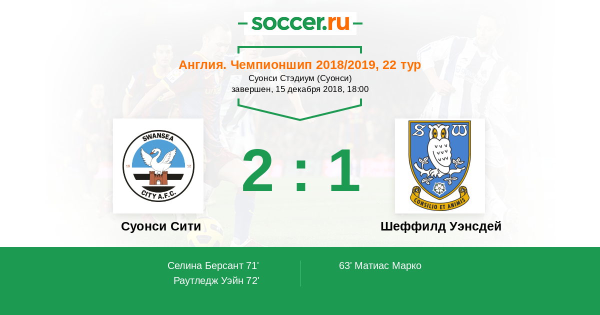 Протокол матча Суонси Сити против Шеффилд Уэнсдей