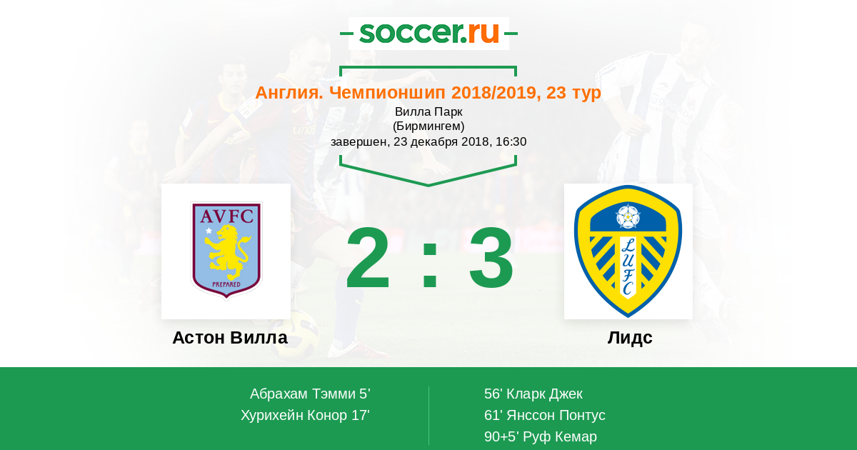 Протокол матча Астон Вилла против Лидс