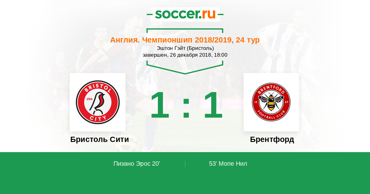 Протокол матча Бристоль Сити против Брентфорд