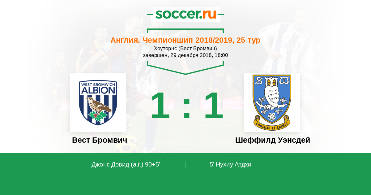 Протокол матча Вест Бромвич против Шеффилд Уэнсдей