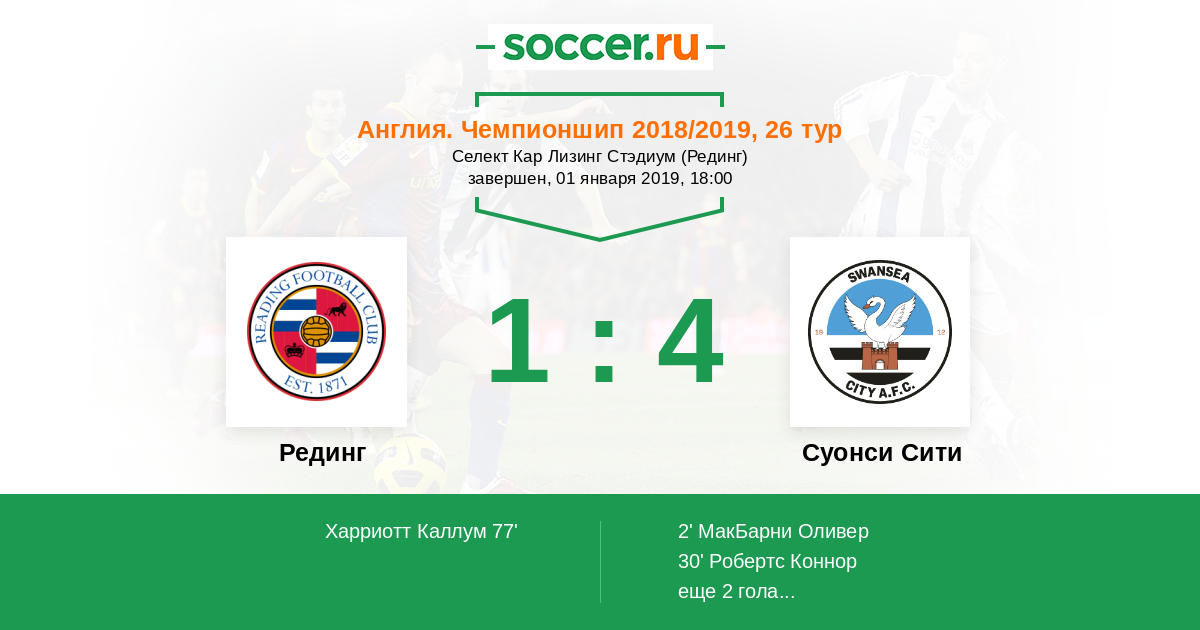 Протокол матча Рединг против Суонси Сити