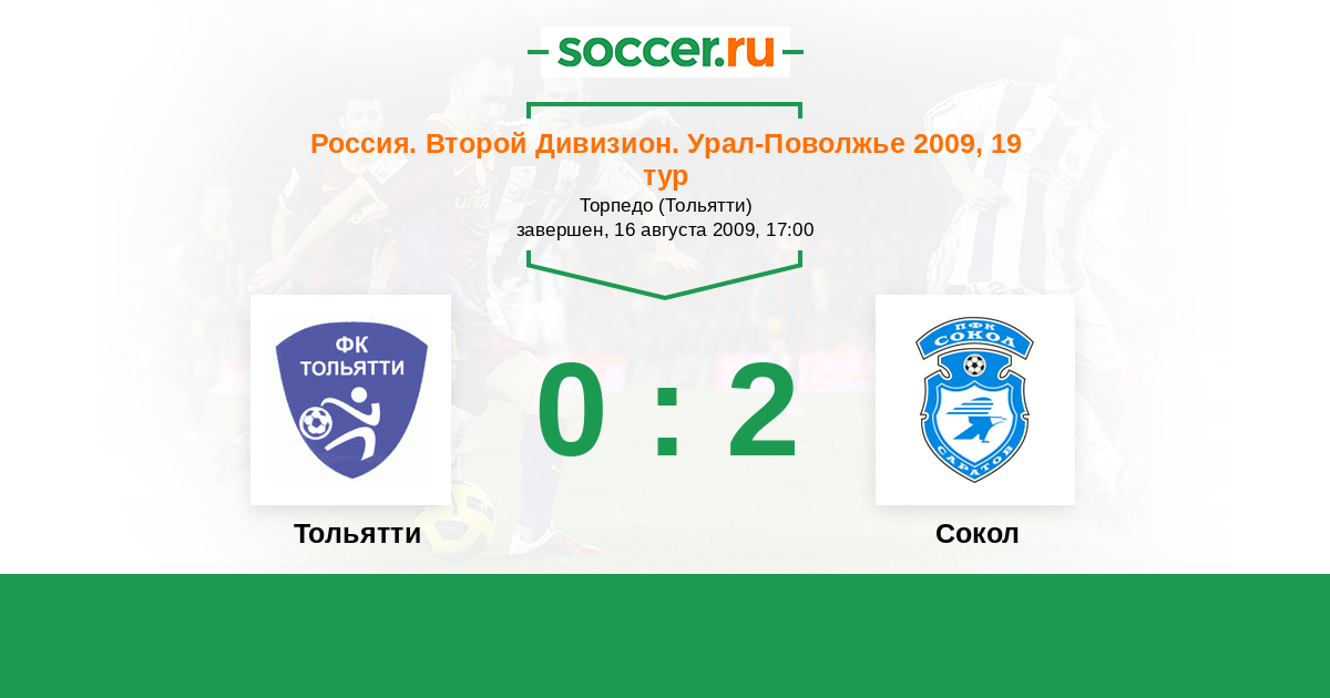 Россия. Вторая лига. Группа 4 07.05.2009 Сокол Логотип футбольный клуб Сокол (Саратов) 0:3 Логотип футбольный клуб Тольятти Тольятти