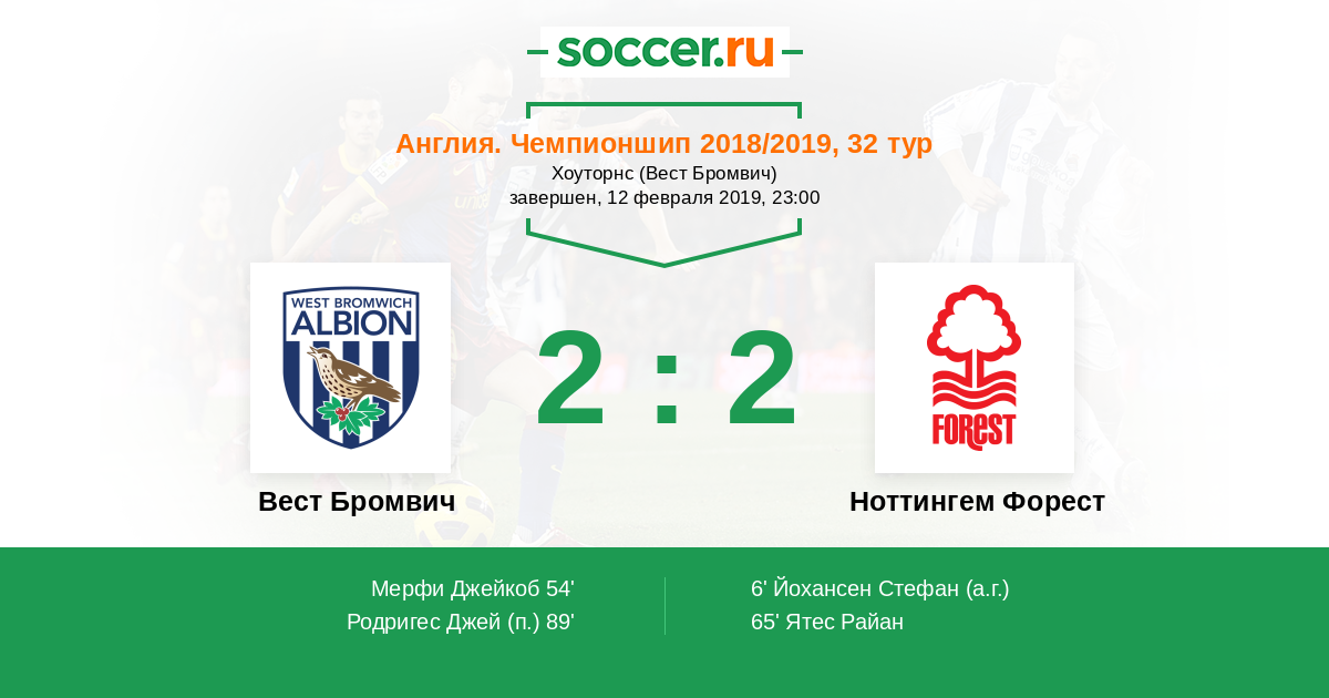 Протокол матча Вест Бромвич против Ноттингем Форест
