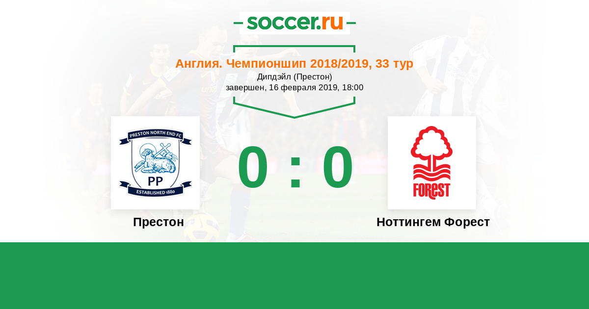 Протокол матча Престон против Ноттингем Форест