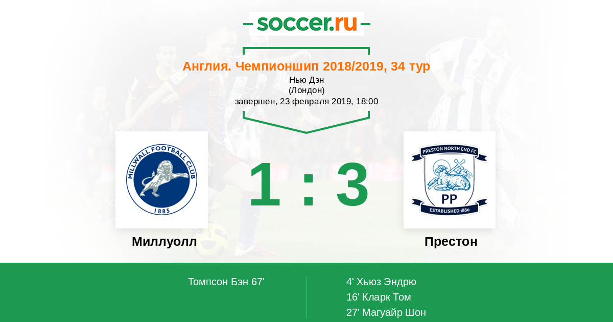 67' (1:3) Томпсон Бэн (8) (Морисон Стив (20))