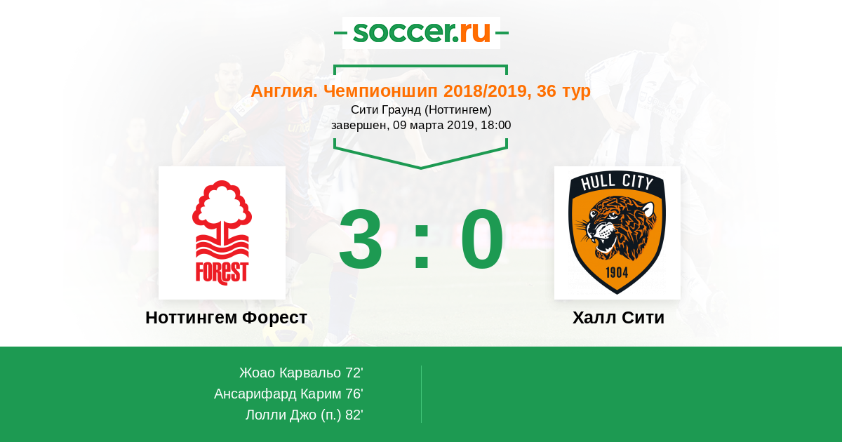 Протокол матча Ноттингем Форест против Халл Сити