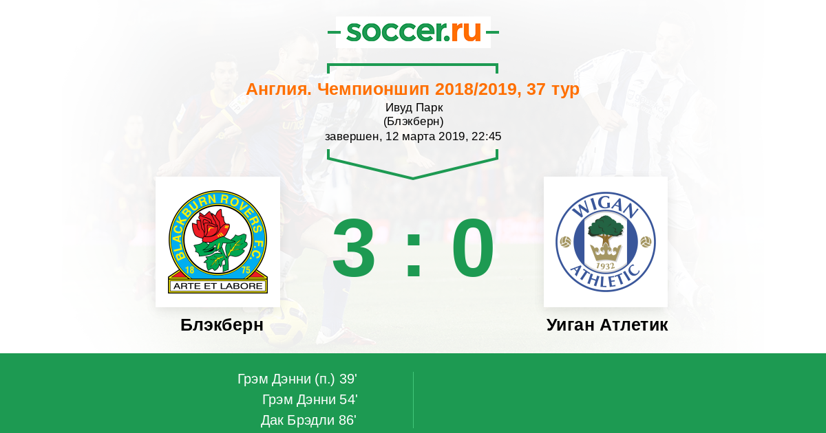 Протокол матча Блэкберн против Уиган Атлетик