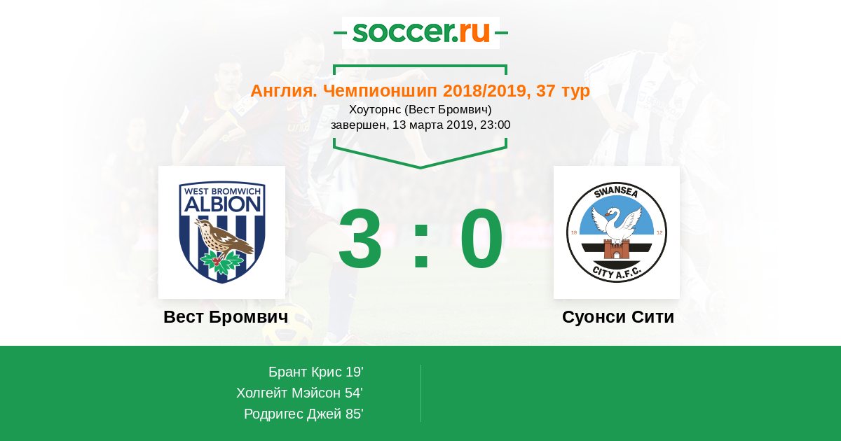 Протокол матча Вест Бромвич против Суонси Сити