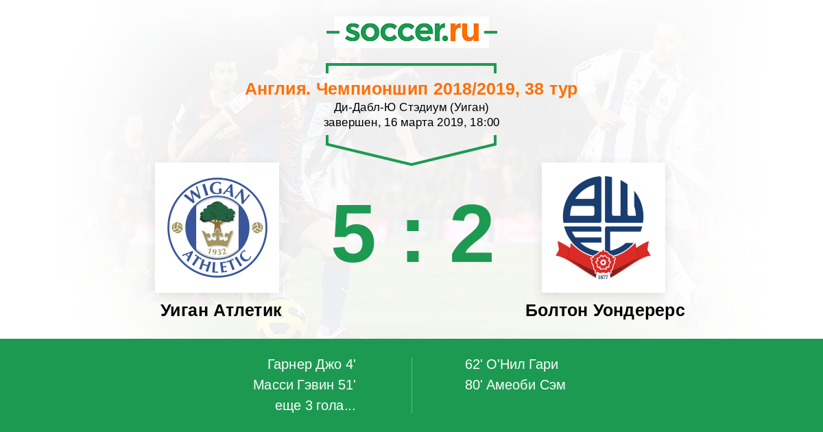 Протокол матча Уиган Атлетик против Болтон Уондерерс