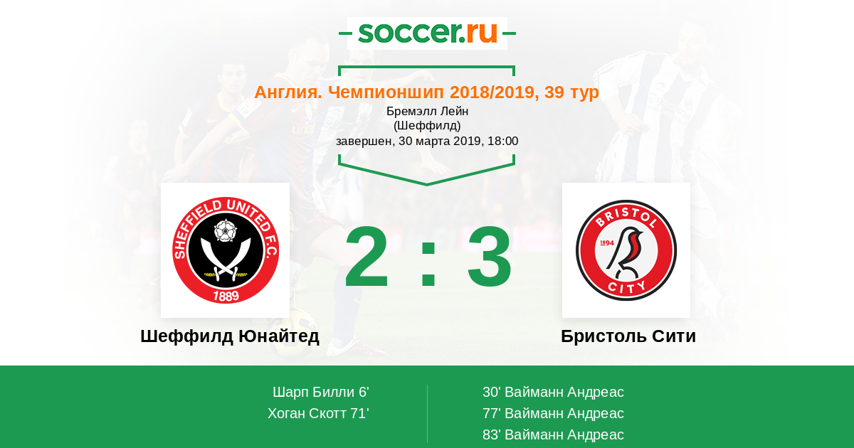 Протокол матча Шеффилд Юнайтед против Бристоль Сити