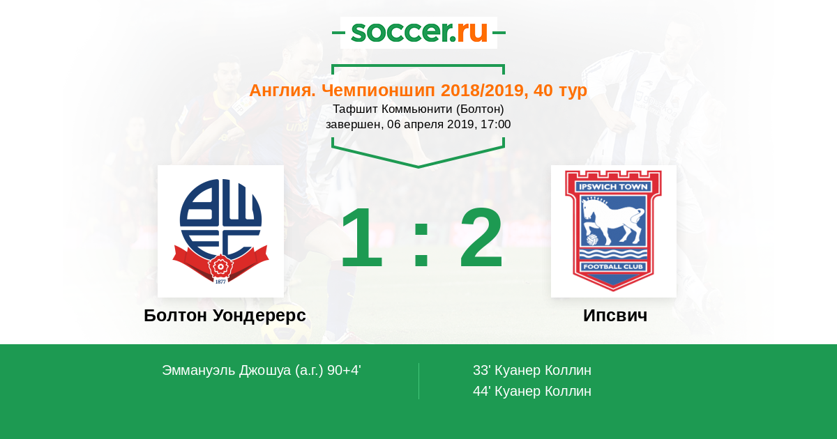 90+4' (1:2) Автогол Эммануэль Джошуа (27)