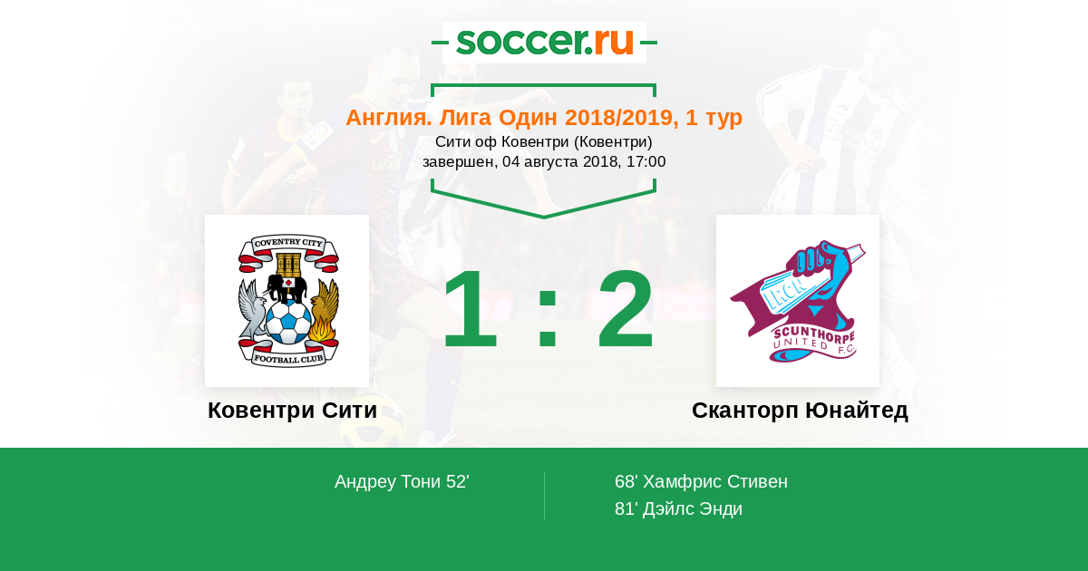 Протокол матча Ковентри Сити против Сканторп Юнайтед