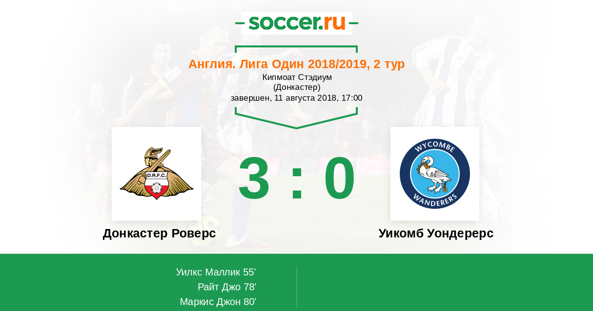 Протокол матча Донкастер Роверс против Уикомб Уондерерс