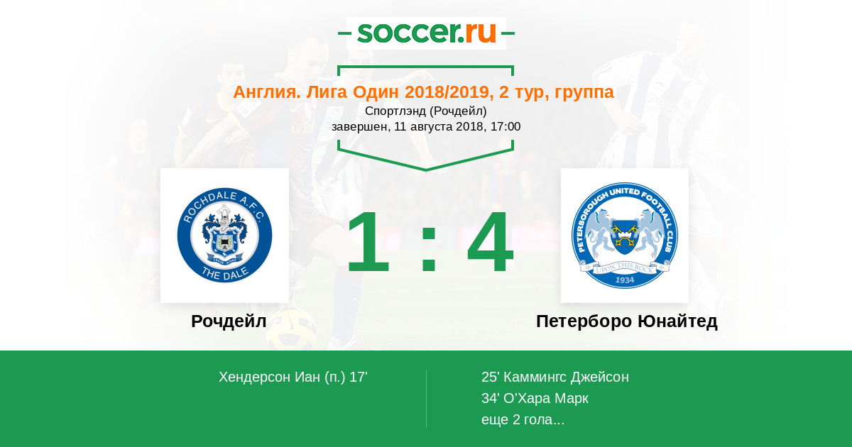 Протокол матча Рочдейл против Петерборо Юнайтед