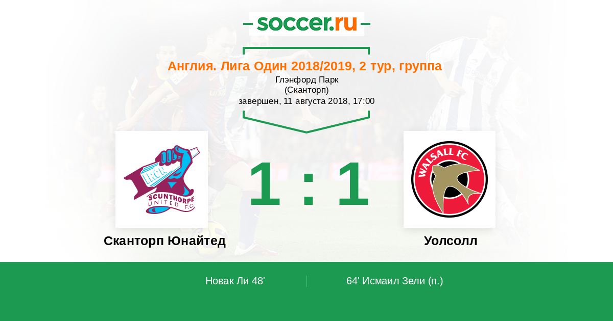 Протокол матча Сканторп Юнайтед против Уолсолл