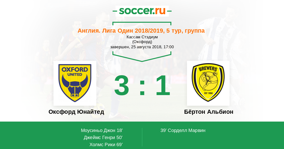 Протокол матча Оксфорд Юнайтед против Бёртон Альбион
