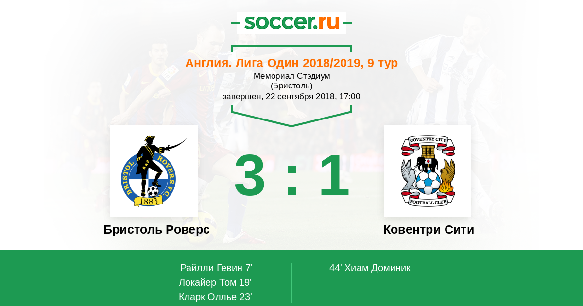 Протокол матча Бристоль Роверс против Ковентри Сити
