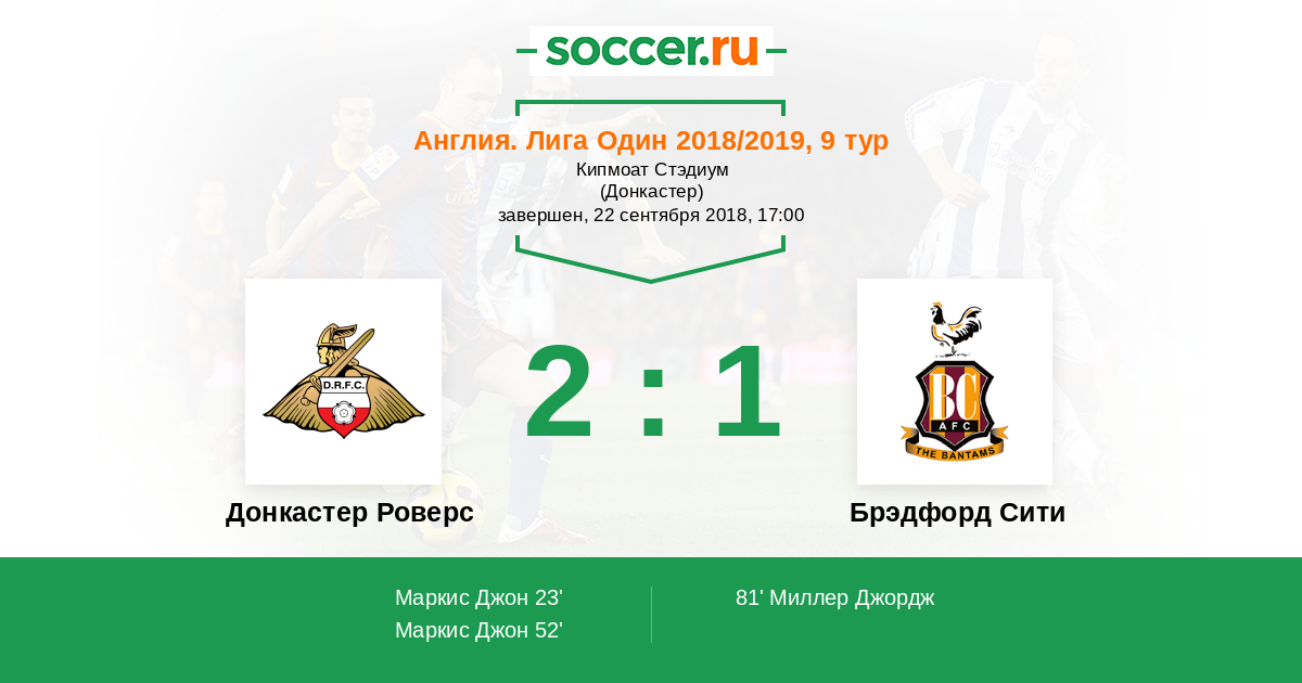 Протокол матча Донкастер Роверс против Брэдфорд Сити