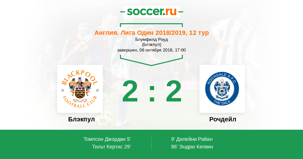 Протокол матча Блэкпул против Рочдейл
