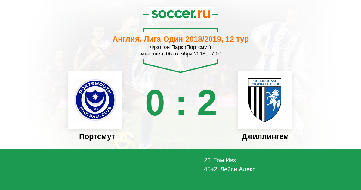 Протокол матча Портсмут против Джиллингем