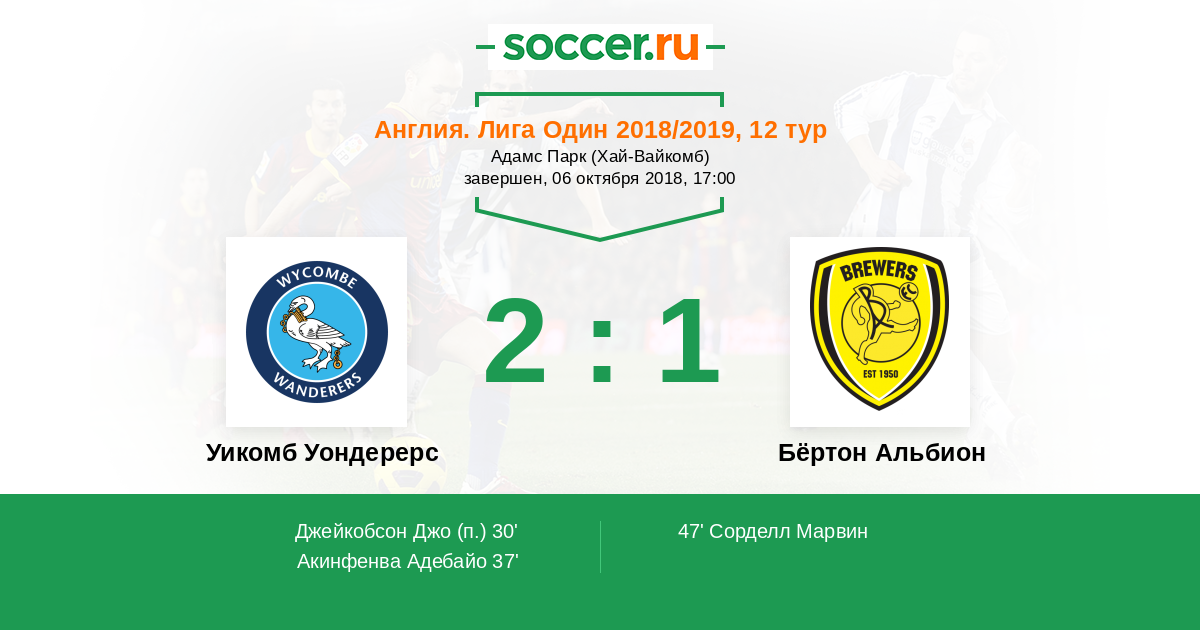 Протокол матча Уикомб Уондерерс против Бёртон Альбион