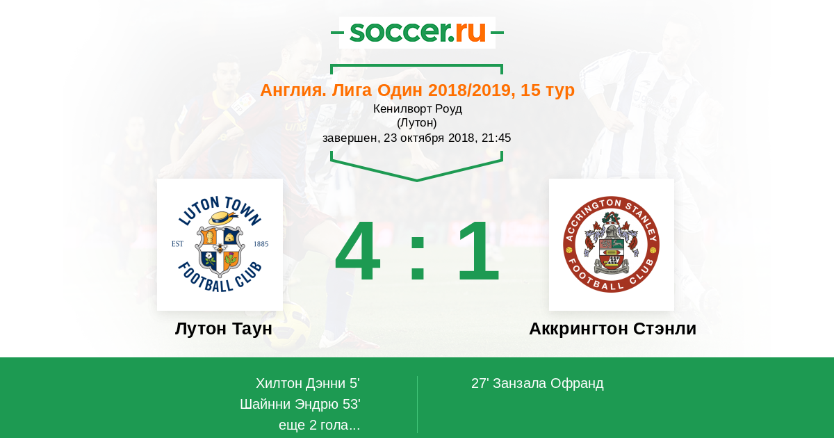 Протокол матча Лутон Таун против Аккрингтон Стэнли