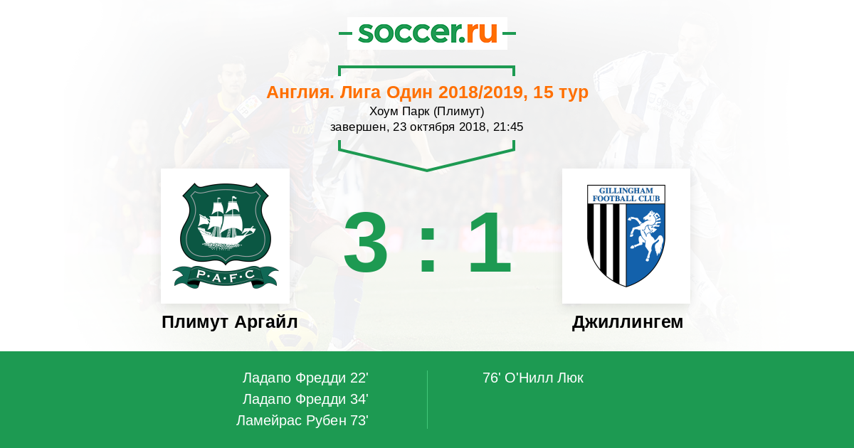 Протокол матча Плимут Аргайл против Джиллингем