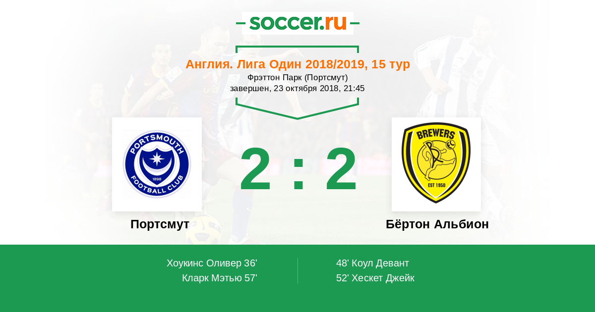 Протокол матча Портсмут против Бёртон Альбион