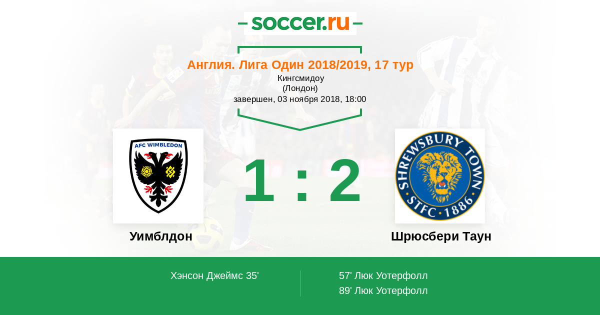 Протокол матча Уимблдон против Шрюсбери Таун
