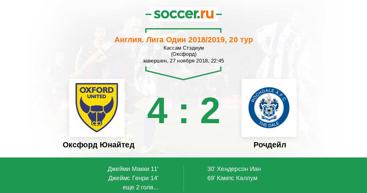 Протокол матча Оксфорд Юнайтед против Рочдейл