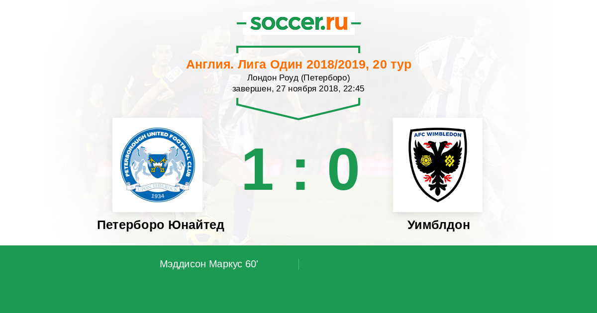 Протокол матча Петерборо Юнайтед против Уимблдон