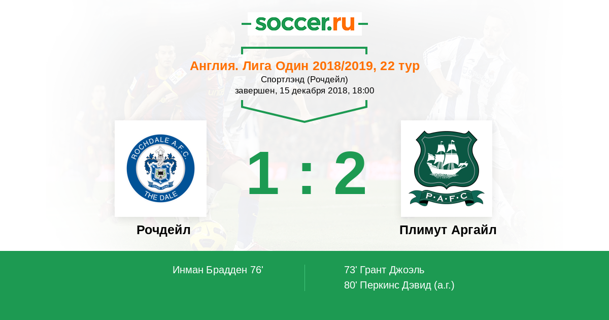Протокол матча Рочдейл против Плимут Аргайл