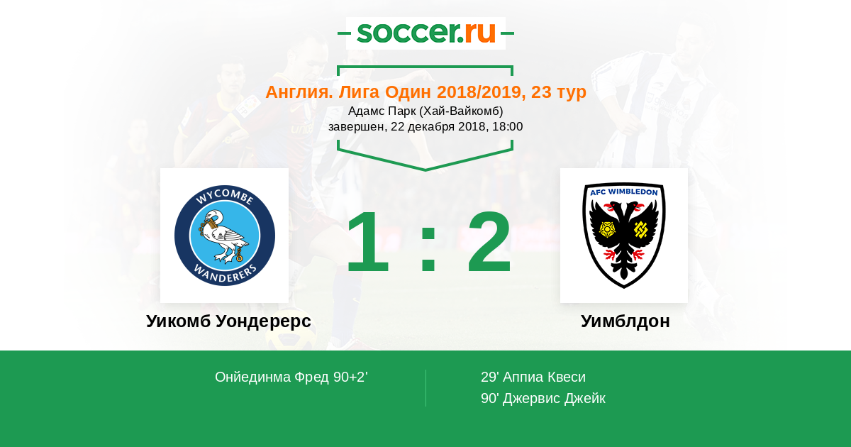 Протокол матча Уикомб Уондерерс против Уимблдон