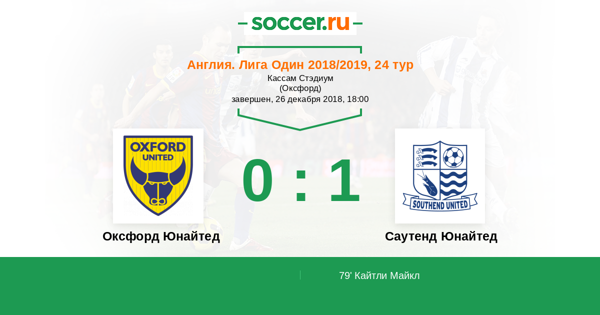 Протокол матча Оксфорд Юнайтед против Саутенд Юнайтед