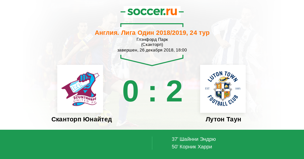 Протокол матча Сканторп Юнайтед против Лутон Таун