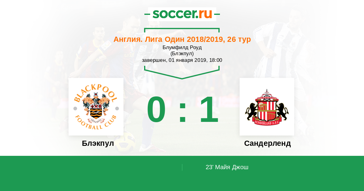 Протокол матча Блэкпул против Сандерленд