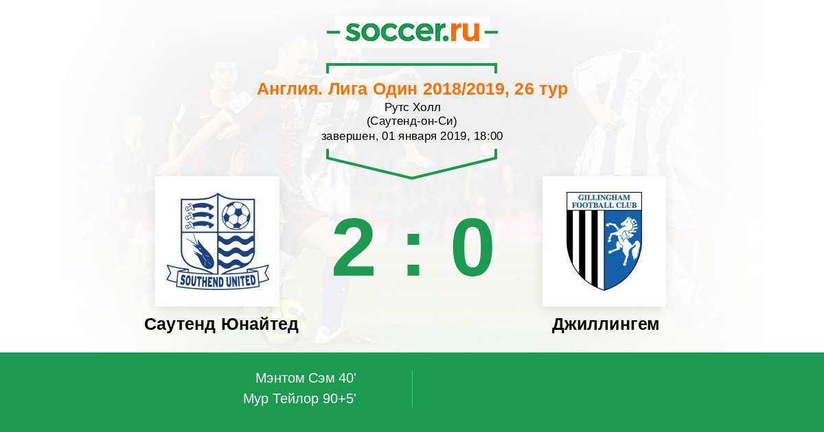Протокол матча Саутенд Юнайтед против Джиллингем