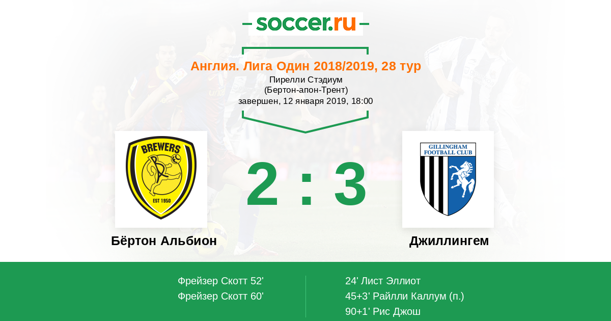 Протокол матча Бёртон Альбион против Джиллингем
